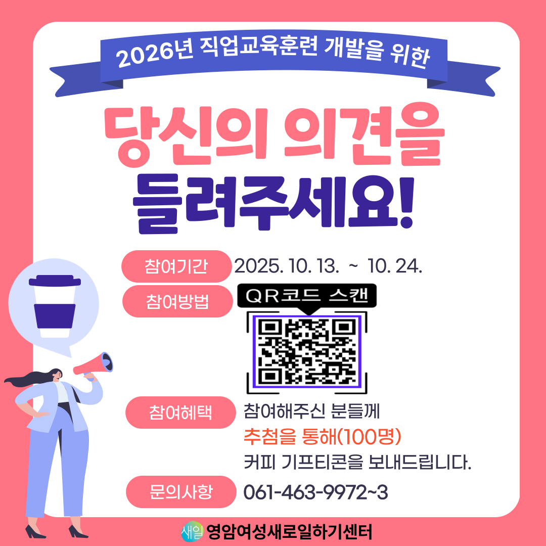 ✔ 참여혜택: 설문 참여자 중 추첨 100명께 커피쿠폰 발송☕