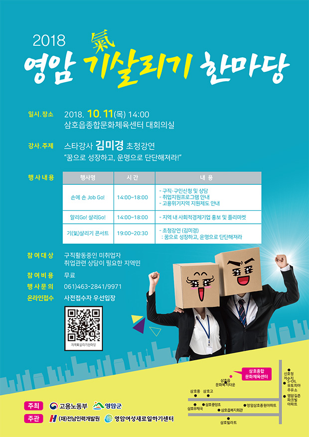 고용위기 극복을 위한 「2018 영암 氣살리기 한마당」을 다음과 같이 개최합니다.