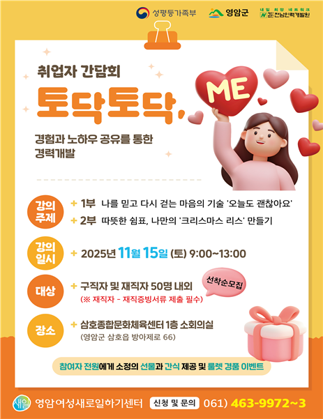 참가 신청 및 문의는 영암여성새로일하기센터로 연락주세요.
