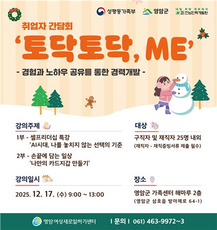 참가 신청 및 문의는 영암여성새로일하기센터로 연락주세요.